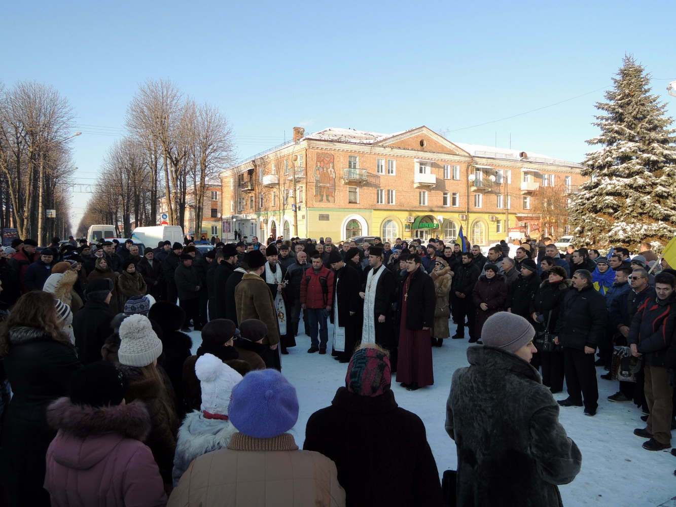 23 січня 2014 року. Панахида у Нововолинську за померлими під час сутичок на вулиці Грушевського у Києві. Очолює нововолинський декан, настоятель собору Святого Духа протоієрей Стефан Фульмес. Світлини Владислава Фульмеса.