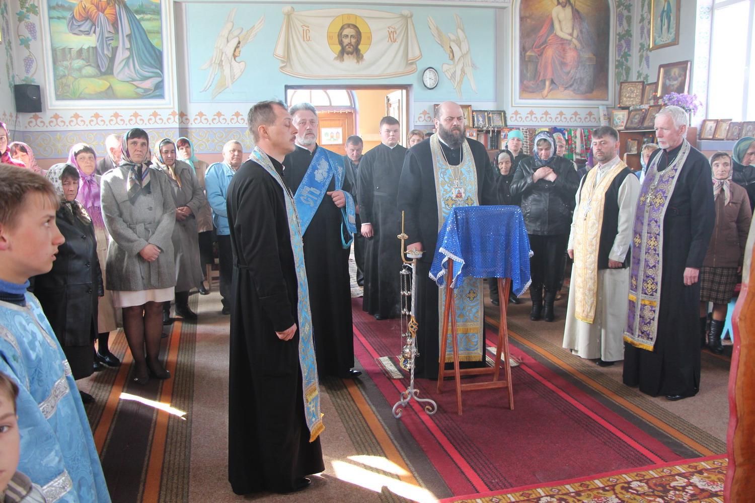 7 квітня 2014 р. Молебень перед оновленими іконами у храмі Різдва Пресвятої Богородиці с. Мощена Ковельського районного деканату. Очолює митрополит Луцький і Волинський Михаїл. світлини інформаційної служби єпархії.