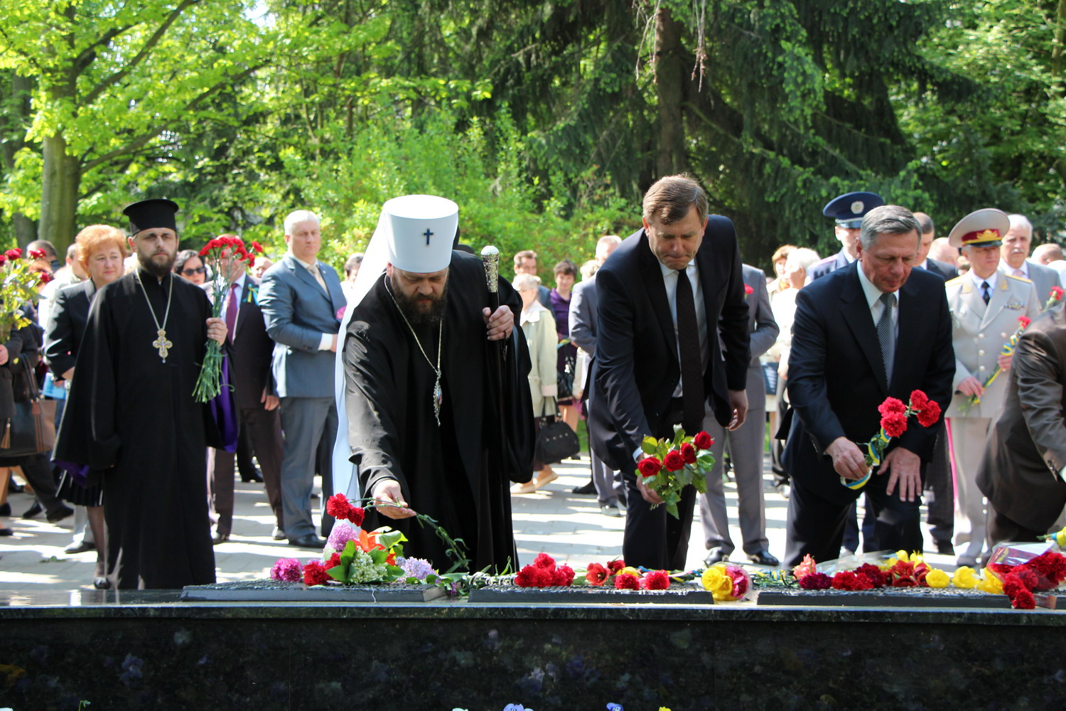 9 травня 2014 р., Меморіал обласного центру. Поминання полеглих воїнів Другої світової війни і всіх, хто загинув за волю України. Світлини інформаційної служби єпархії.