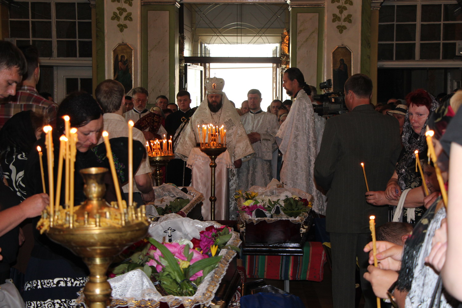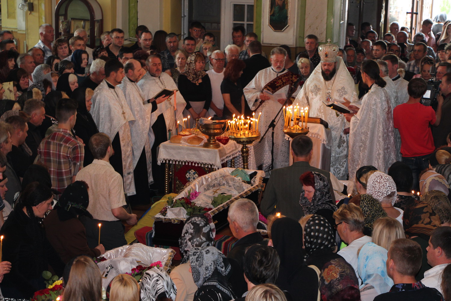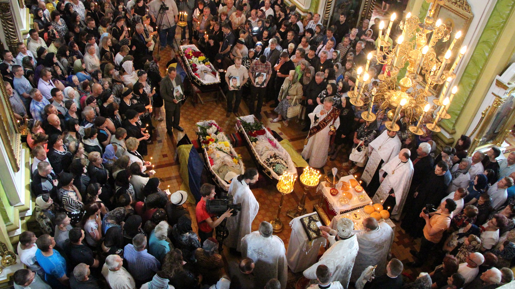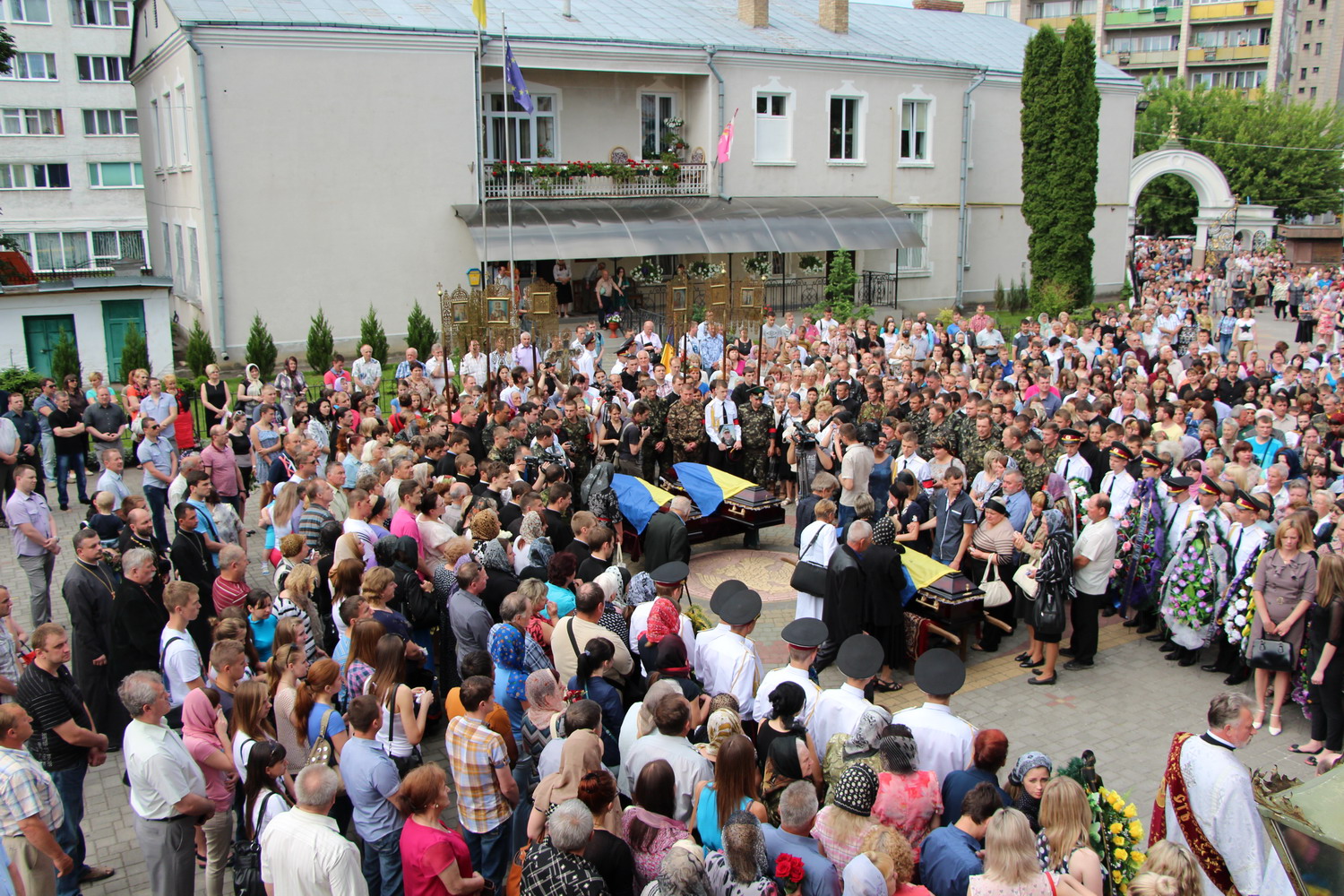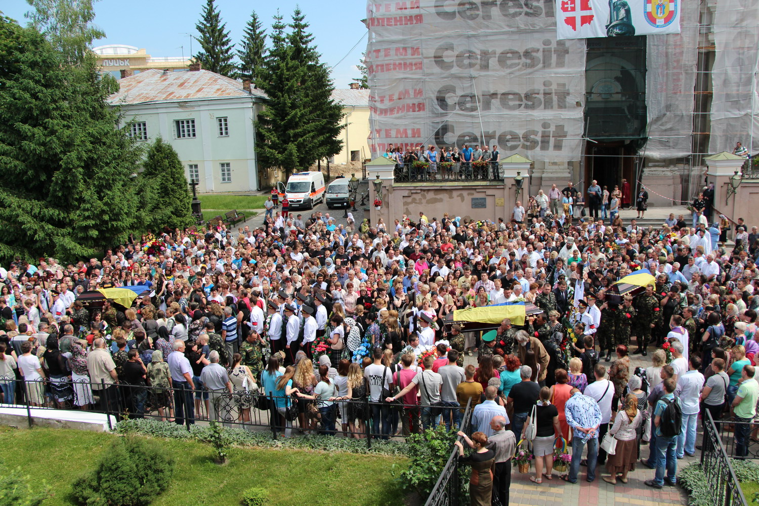 27 травня 2014 р. Чин похорону по бійцях 51-ої окремої механізованої бригади: Дмитром Йовзиком, Володимиром Зарадюком, Віталієм Махновцем, які загинули під час обстрілу під Волновахою 22 травня. Богослужіння очолює митрополит Луцький і Волинський Михаїл. Світлини інформаційної служби єпархії.