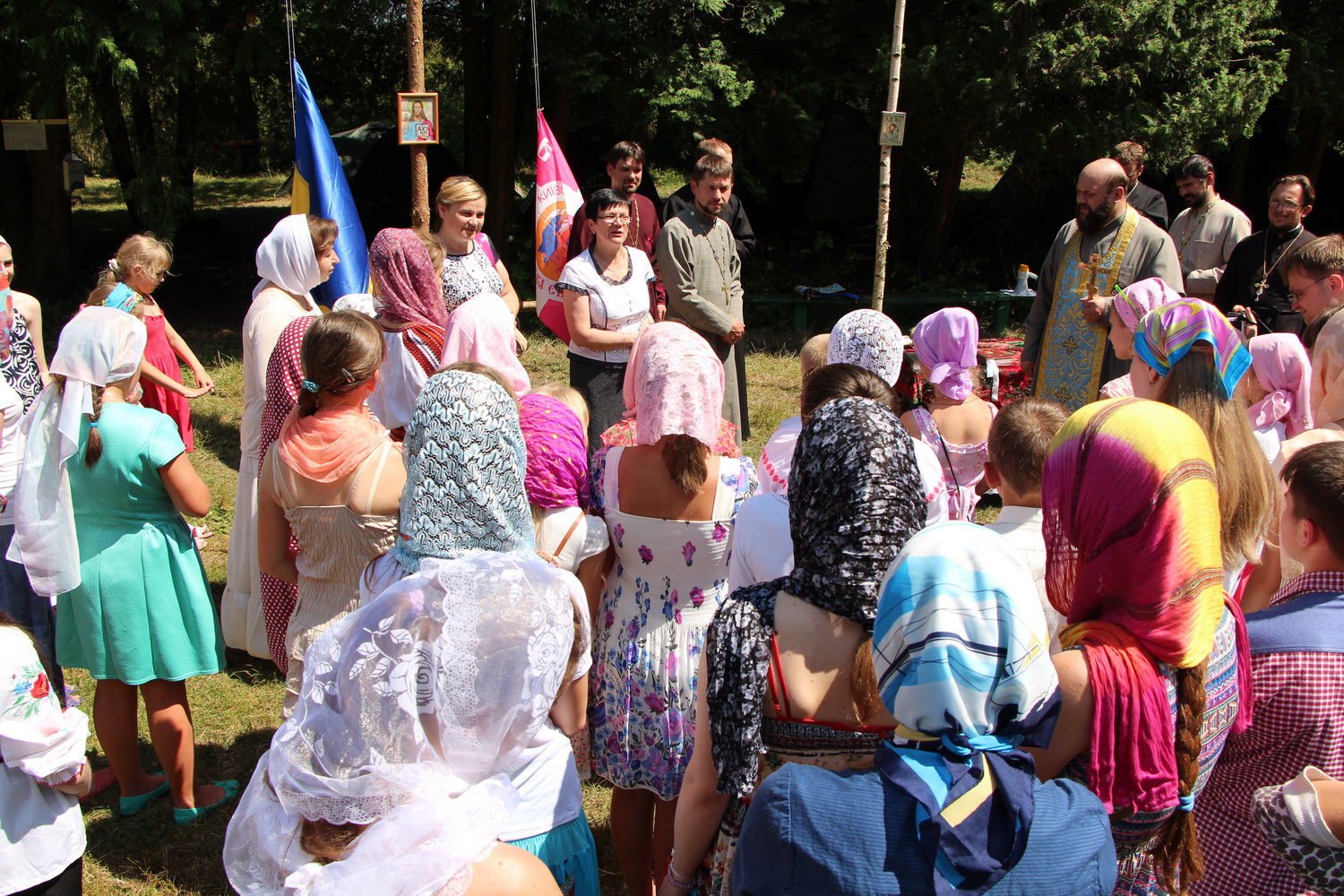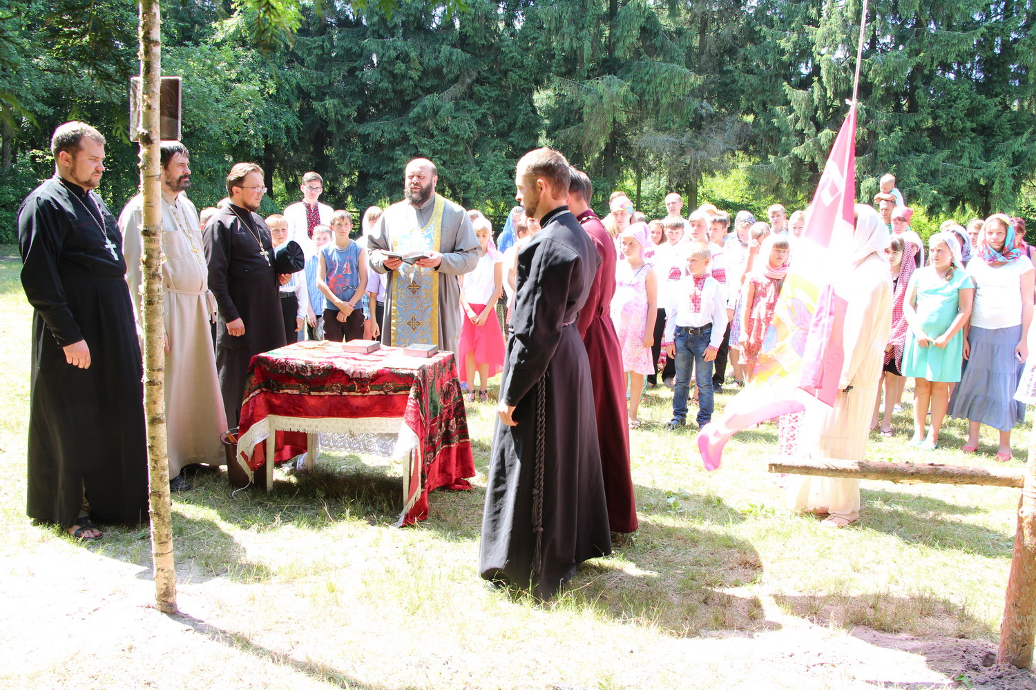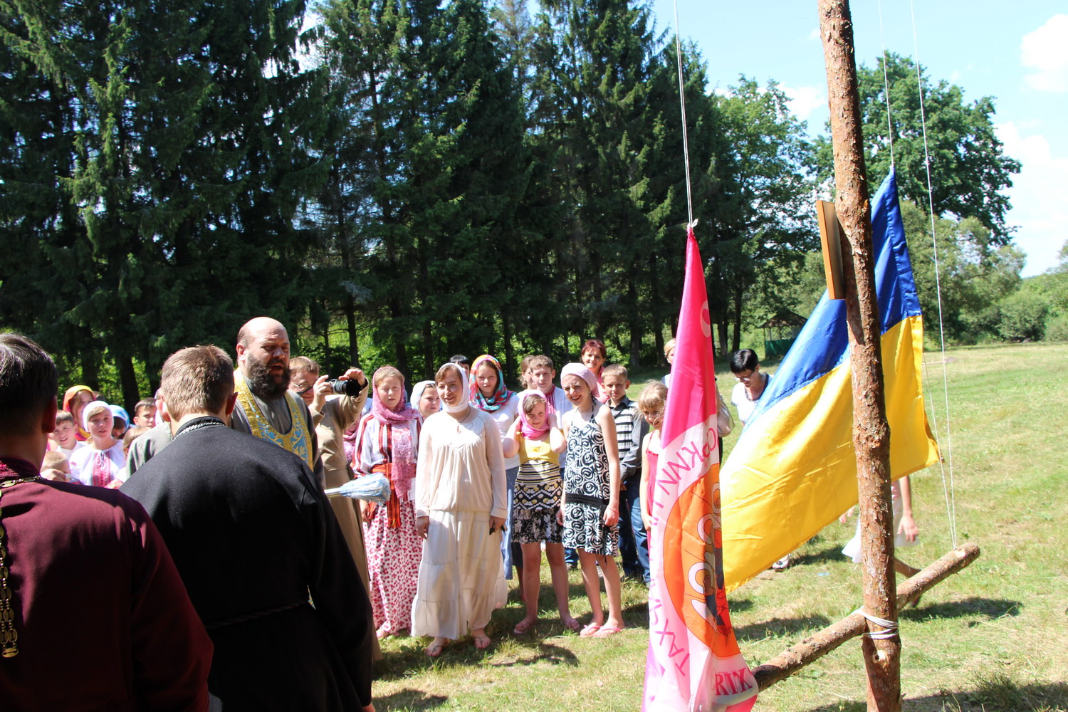 15 липня 2014 р. Молебень на відкритті єпархіального молодіжного табору в урочищі Білі Береги поблизу селища Колки Маневицького деканату. Очолює митрополит Луцький і Волинський Михаїл. Світлини інформаційної служби єпархії.