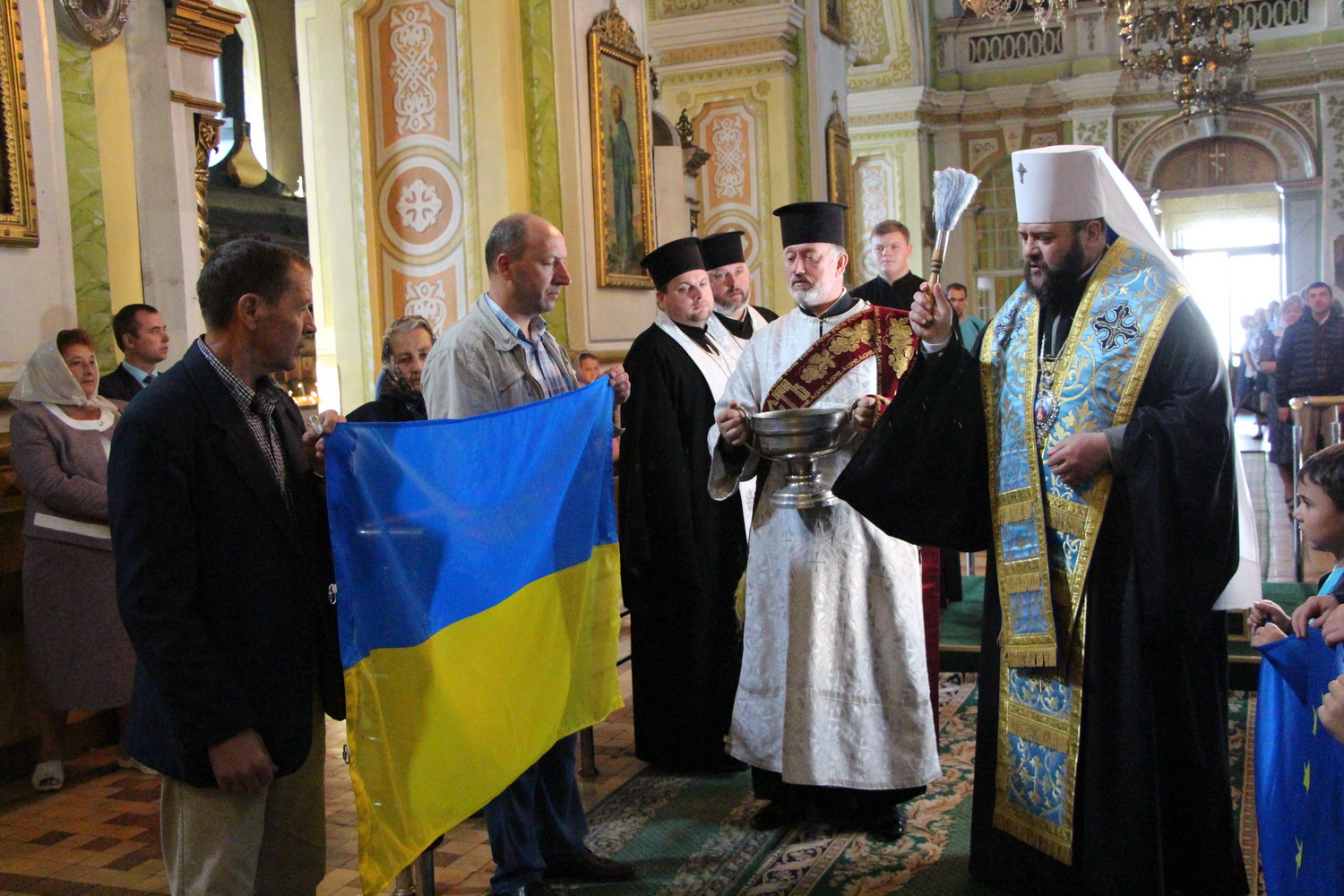 23 серпня 2014 р. Митрополит Луцький і Волинський Михаїл у кафедральному соборі Святої Трійці в Луцьку освячує Прапори України і Євросоюзу, які після цього піднімають на соборному майдані, перед духовною консисторією. Світлини інформаційної служби єпархії.