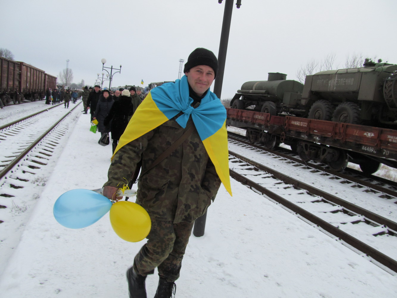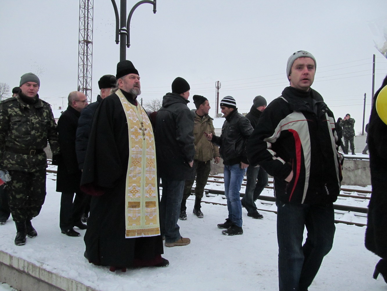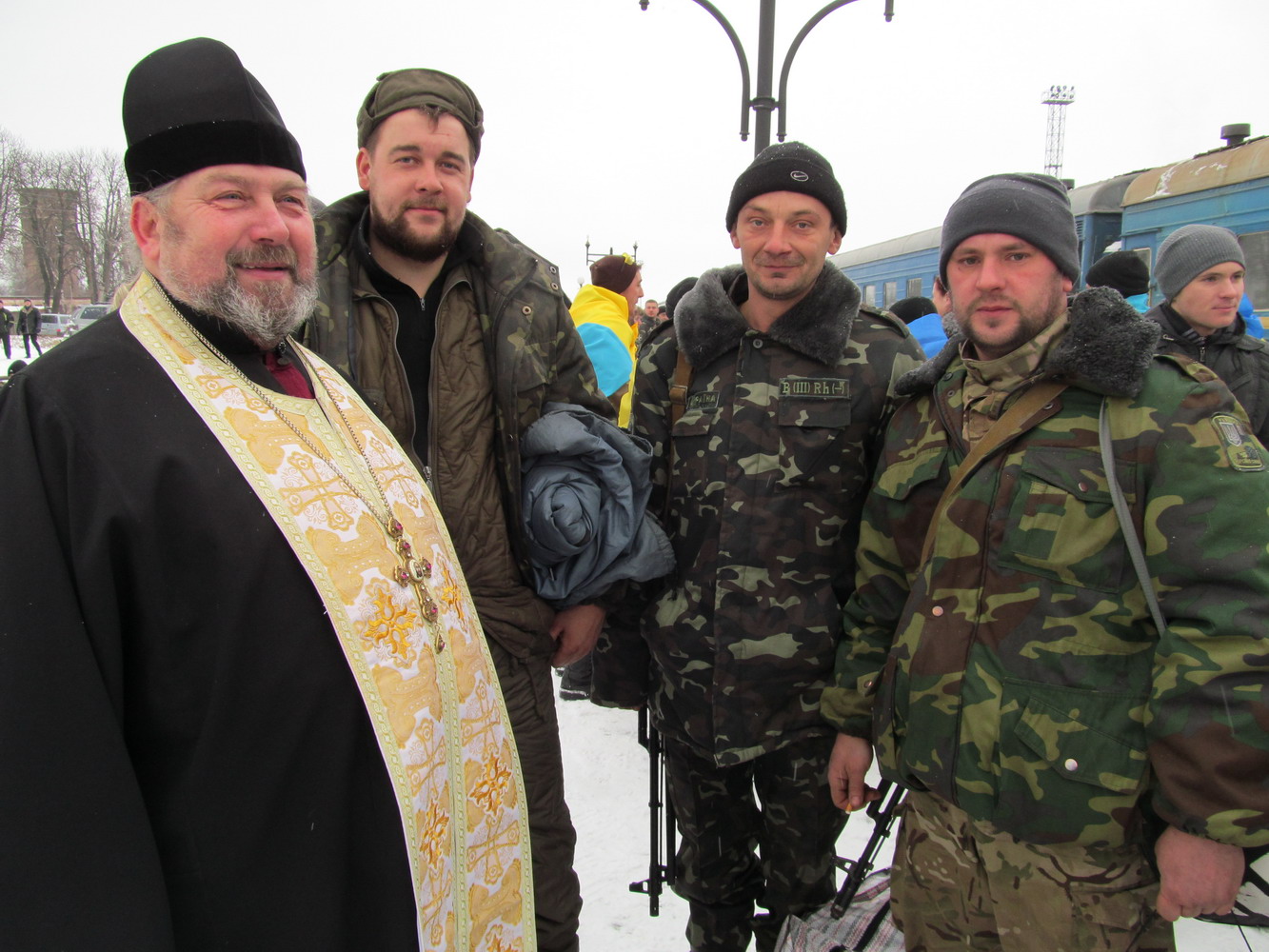 29 грудня 2014 р. Зустріч бійців батальйону територіальної оборони «Волинь», які приїхали на ротацію на залізничному вокзалі Володимира-Волинського за участю місцевого духовенства. Світлини з архіву протоієрея Миколи Гінайла.