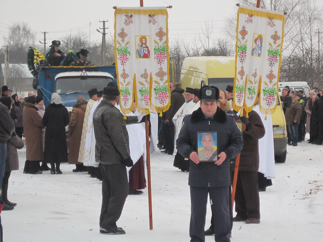 28 грудня 2014 р. Селище Локачі. Чин похорону Віктора Шолухи, бійця роти міліції спеціального призначення «Світязь», який загинув у зоні АТО. Світлини з архіву протоієрея Ігоря Дружинця.