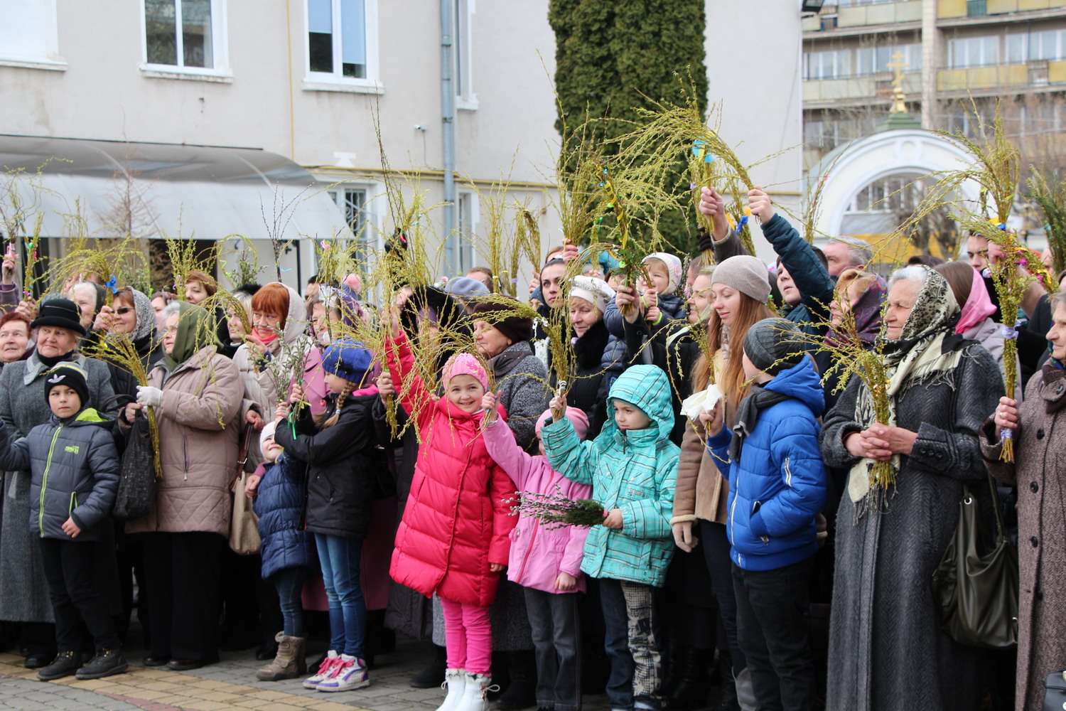 5 квітня 2015 р. Освята верби на подвір’ї кафедрального собору Святої Трійці в Луцьку. Світлини інформаційної служби єпархії.