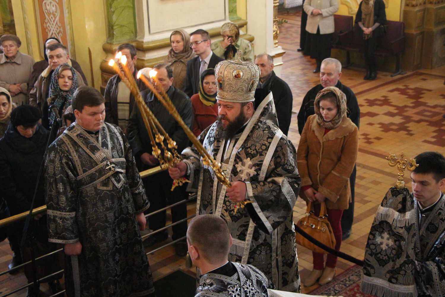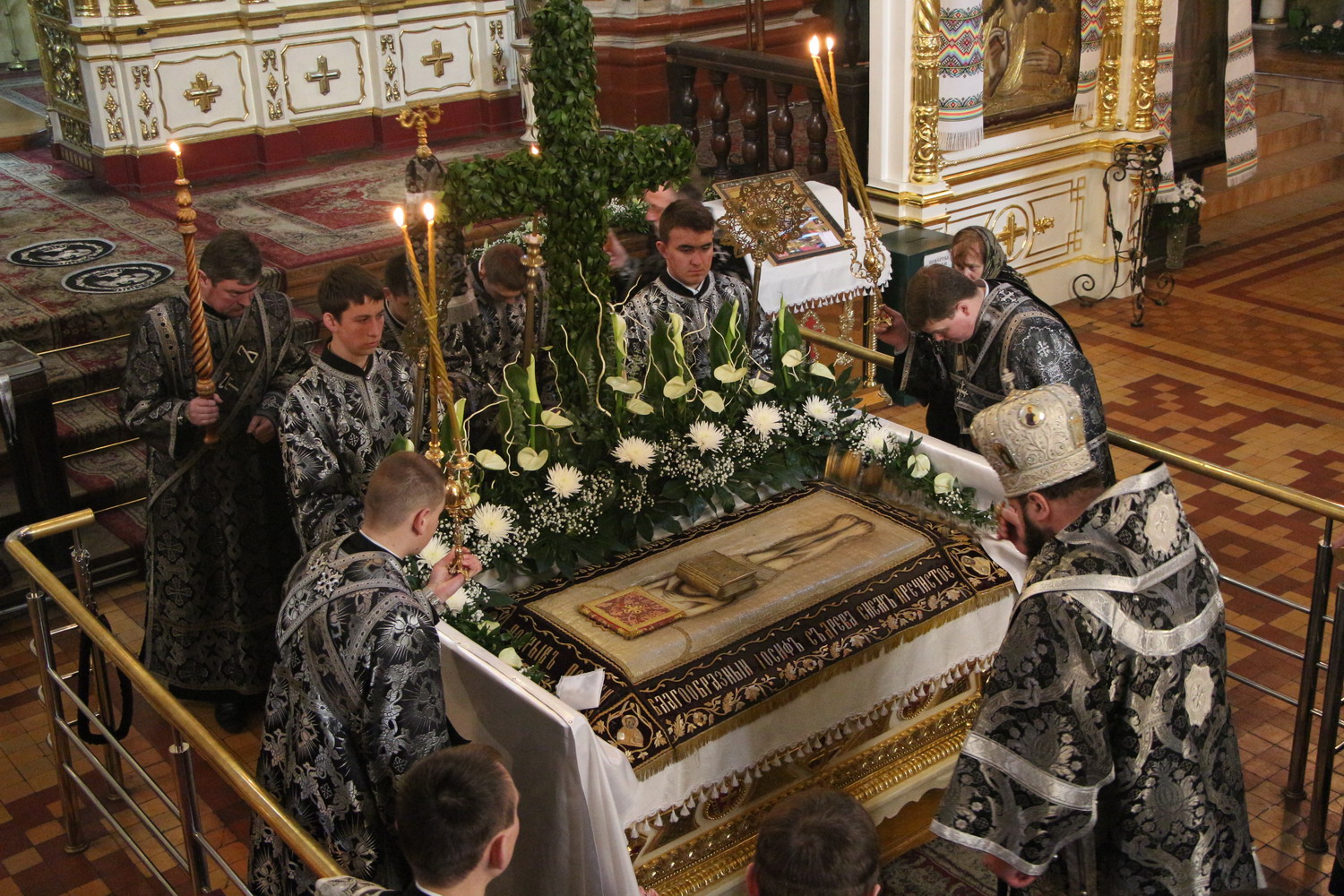 10 квітня 2015 р. Вечірня Великої п’ятниці з виносом плащаниці в кафедральному соборі Святої Трійці. Очолює митрополит Луцький і Волинський Михаїл. Світлини інформаційної служби єпархії.