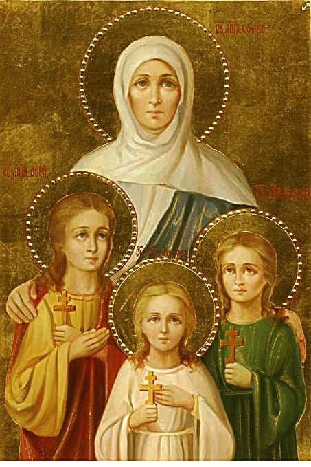 У 137 р., за імператора Адріана, в Римі жила благочестива вдова Софія (що по-грецьки означає мудрість). У неї були три дочки, які носили імена головних християнських чеснот: Віра, Надія і Любов (грецькою – Pistis, Elpis, Agape)...