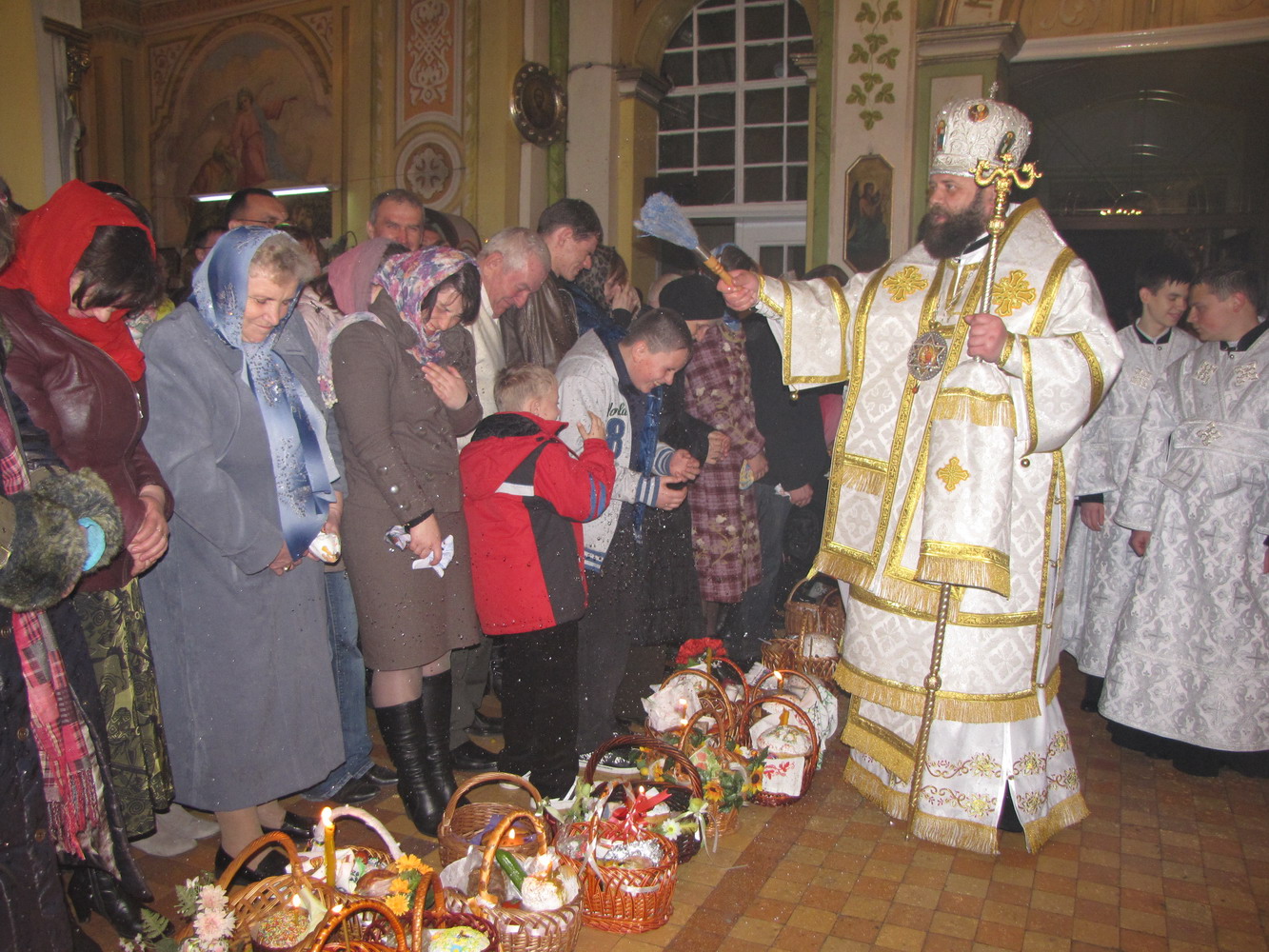 Перед Літургією архієрей запалив свічки від лампадки із благодатним вогнем, привезеним добродійниками з Єрусалима, після чого кожен міг отримати священний пломінь на свої ґнотики.